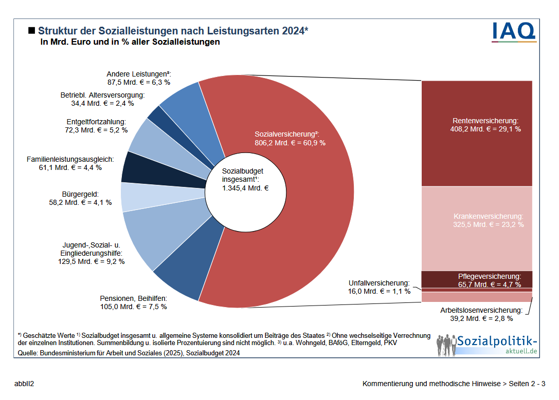 İşsizlik yardımı kasasında biriken para 65.7 milyar Euro, Yaşlı Bakım ya da genel bakım sigortasında 65,7 milyar Euro, kaza sigortasında 16 milyar Euro para bulunuyor. Toplam sosyal yardımlar ve fonlar 1 trilyon 354 milyar Euro’yu buluyor.