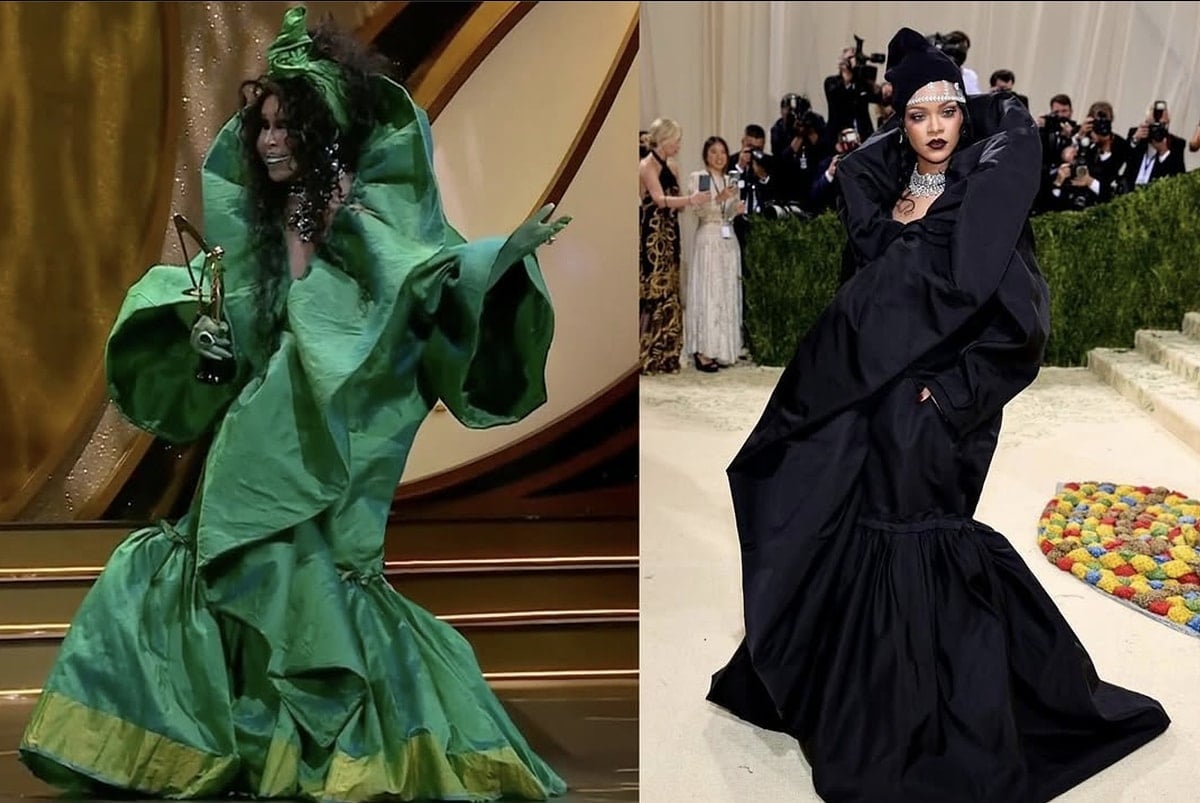 “Dünya çapındaki modacılar ile çalışan yine dünya çapındaki bir artist madam Rihanna bu modeli beğenmiş giymiş, giydirilmiş ve takdir görmüş. Bu pardösüyü ben de giyip bu büyük ödülü bu kıyafet ile almalıyım diyerek muhterem kişilerin karşısına bu tafta pardesü ile çıktım. Kumaşımda ipek şantunk tafta ve Paris’ten çok güzel yaptım ooooohhhhh…”