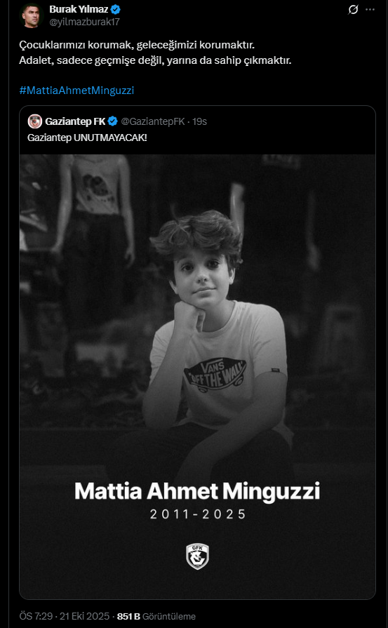 Gaziantep FK Teknik Direktörü ve eski milli futbolcu Burak Yılmaz, sosyal medya hesabından yaptığı paylaşımda karara tepki gösterdi ve şu iletiyi paylaştı: