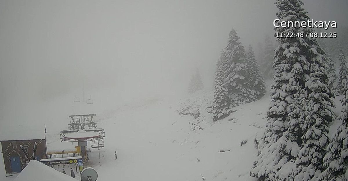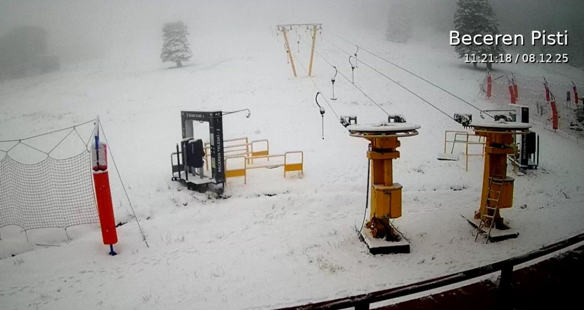 Türkiye’nin önemli kış turizmi merkezlerinden Uludağ’da hafta sonu etkili olan kar yağışı bugün de aralıklarla sürüyor.