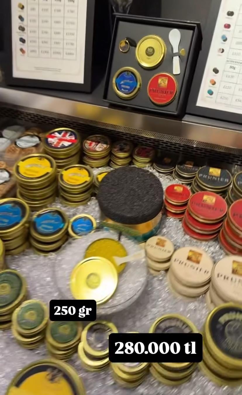 Ebru Şancı şimdi de 250 gram havyarın fiyatını gösterdi.