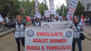 Bursa İl Temsilciliği adına yapılan açıklamada, “EYT sonrası kapsam dışında kalan yüzbinlerce kişi var. Bu haksızlığın giderilmesi için mücadelemizi sürdürüyoruz. Emeklilikte adalet istiyoruz ve bu sesimiz duyulana kadar alanlarda olacağız,” denildi.