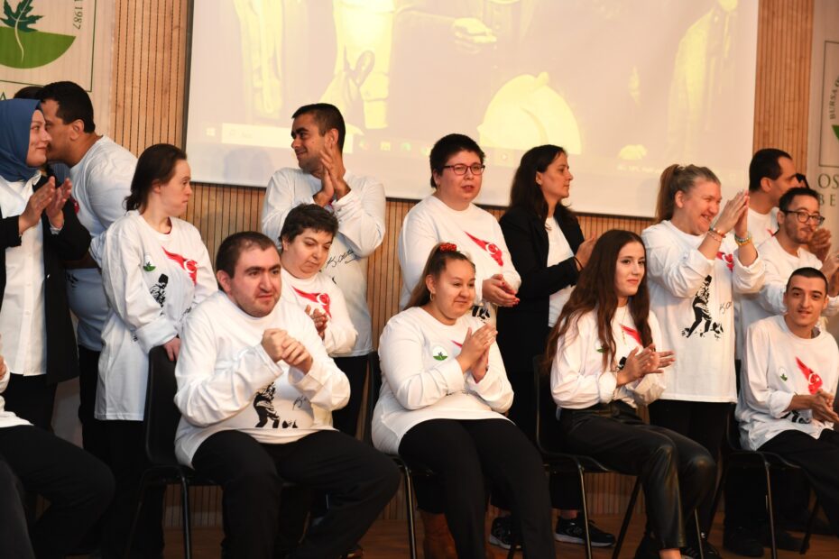Türkiye Cumhuriyeti’nin 102’inci kuruluş yıldönümü için Osmangazi Belediyesi Engelli Bakım Merkezi (OBAM)’da eğitim gören özel gereksinimli öğrenciler, birbirinden özel gösteriler hazırladı. Osmangazi Gösteri Merkezinde düzenlenen kutlama etkinliğinde sahne alan özel öğrenciler, koro eşliğinde şarkılar söyleyip çeşitli gösteriler yaparak Cumhuriyetin 102’inci kuruluş yıldönümü büyük bir sevinç ve heyecanla kutladı. Engelli bireylerin yaptığı bir birinden özel gösteriler izleyenler tarafından büyük beğeni aldı. Düzenlenen kutlama etkinliğine Osmangazi Belediye Başkanı Erkan Aydın, belediye başkan yardımcıları, meclis üyeleri, öğrenciler ve vatandaşlar katıldı. Programa katılanlar engelli bireylerin söylediği coşkulu şarkılara alkışlarla ritim tutup eşlik ederek heyecanlarına ortak oldu.