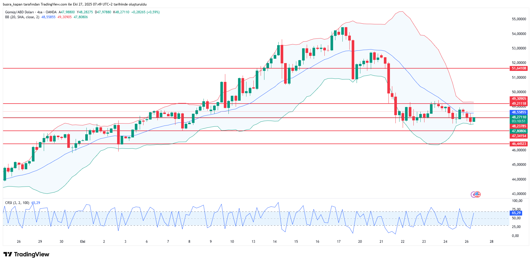 Ons gümüş haftanın ilk işlem gününe 48,44 dolardan başladı. Gün içinde en düşük 47,80 dolar, en yüksek de 48,69 dolar seviyesi görüldü. Sabah seansında 08.47’de 48,26 dolarda hareketleniyor.