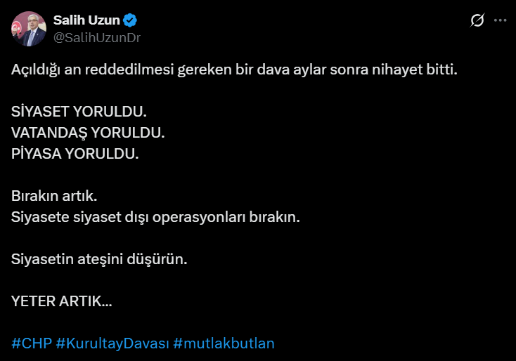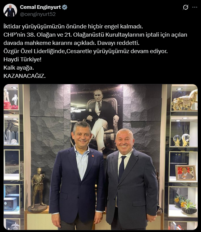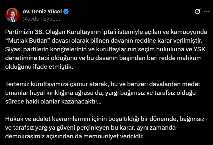 Eski Hatay Büyükşehir Belediye Başkanı Lütfü Savaş ve bazı delegelerin, 4-5 Kasım 2023’te yapılan 38. Olağan ve 6 Nisan 2025’teki 21. Olağanüstü kurultayına ilişkin açılan iptal davası reddedildi.