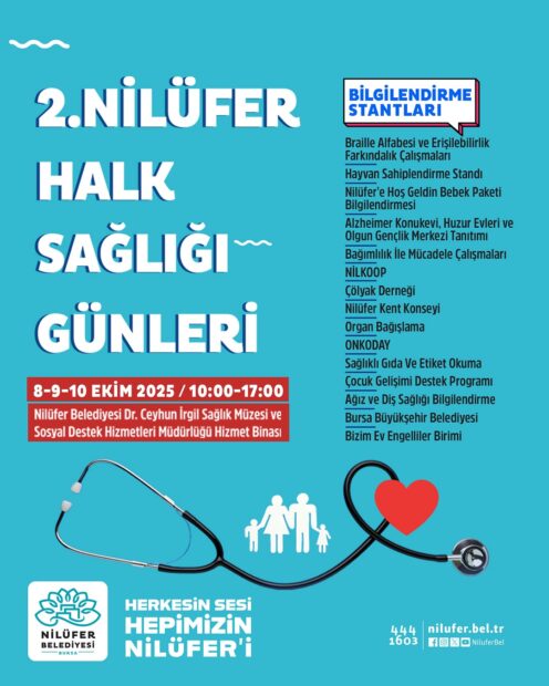 Etkinlik alanında kurulacak bilgilendirme stantlarında ise Nilüfer Belediyesi’nin ilgili birimlerinin yanı sıra Bursa Büyükşehir Belediyesi, Çölyak Derneği ve ONKODAY gibi kurumlar da yer alacak. Bu stantlarda; organ bağışından bağımlılıkla mücadeleye, Alzheimer’den hayvan sahiplendirmeye, sağlıklı gıda ve etiket okumadan Braille alfabesine kadar geniş bir yelpazede farkındalık çalışmaları yürütülecek.