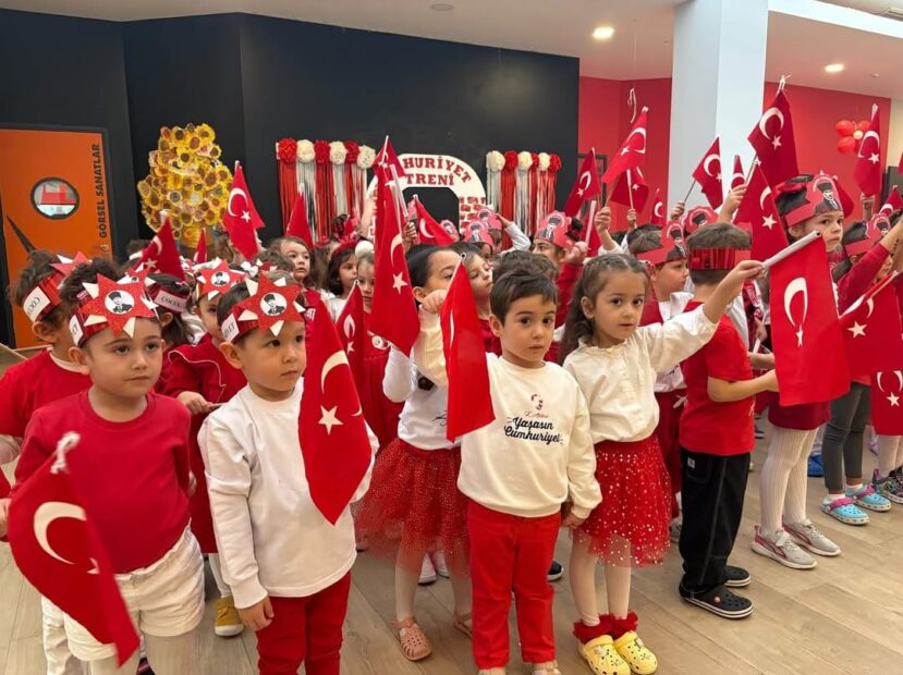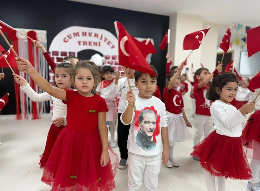 Nilüfer Belediyesi bünyesindeki Kreş ve Gündüz Bakımevleri’nde eğitim gören minikler, Cumhuriyetin 102’nci yılını kırmızı-beyaz bir sevgi seline dönüştürdü. Atatürk posterleriyle, kırmızı-beyaz süslemelerle donatılan sınıflar, adeta küçük bir Cumhuriyet alanına dönüştü.