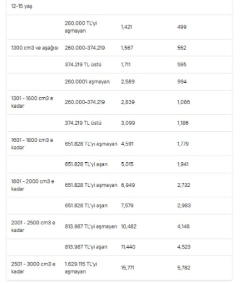 Bu araçların vergi oranları, silindir hacmine bağlı olarak değişiklik göstermektedir ve her yaş grubuna göre ayrı değerlendirme yapılmaktadır.