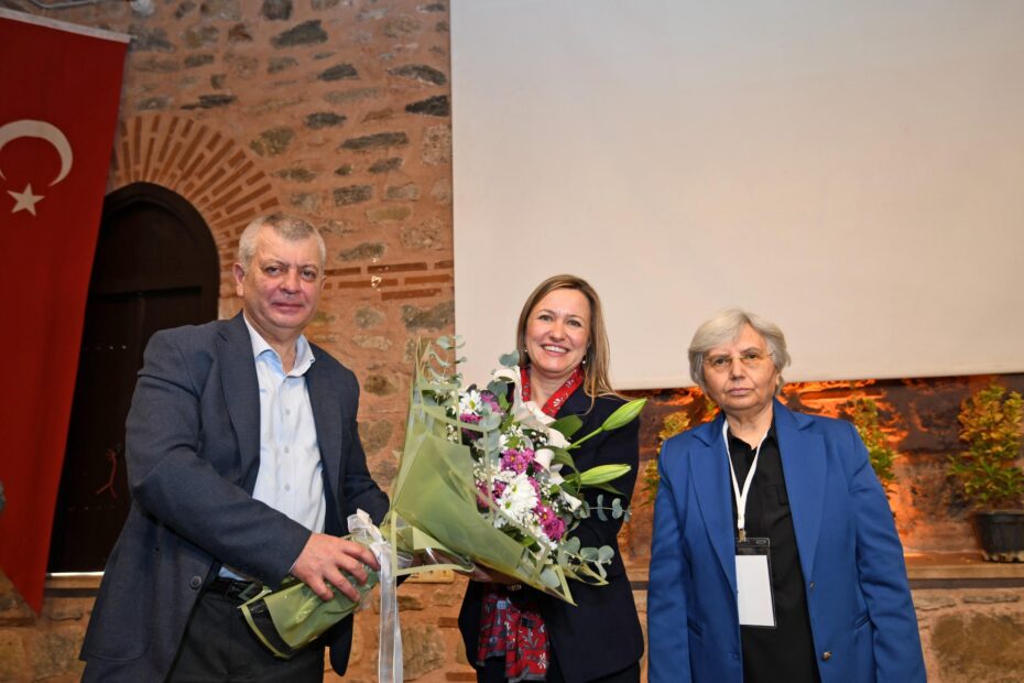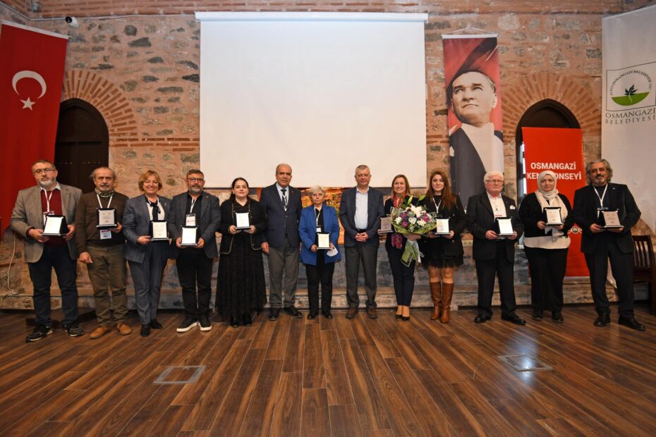 Osmangazi Kent Konseyi’nde 24. Seçimli Genel Kurul Toplantısı’nın ardından Osmangazi Belediye Başkan Yardımcısı Mutlu Esendemir, Osmangazi Kent Konseyi Başkanı Sevim Sakallı ve önceki dönem başkanı Fatma Çil Yılmaz’a çiçek takdiminde bulunurken, Osmangazi Kent Konseyi’nde dönemini tamamlayan yürütme kurulu üyelerine de teşekkür plaketi sundu.