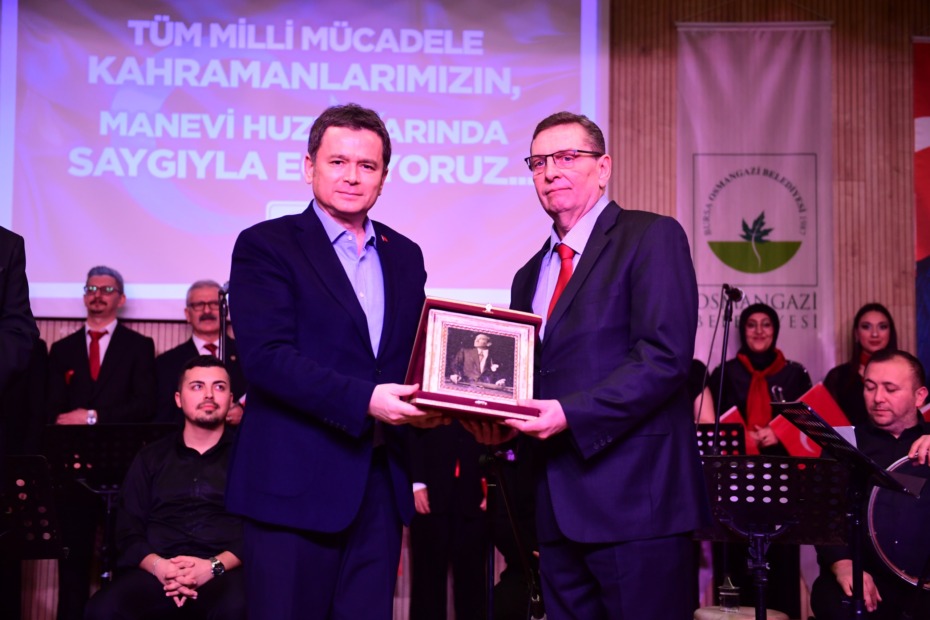 Osmangazi Belediye Başkanı Erkan Aydın, tiyatro sanatçısı Akif Oktay ve şef Fatih Şengöçmen’e katkılarından dolayı Ulu Önder Mustafa Kemal Atatürk plaketi takdim etti. Protokol üyeleri daha sonra hep birlikte gecenin anısına hatıra karesinde yeniden bir araya gelerek, birlik ve beraberliği paylaştı.