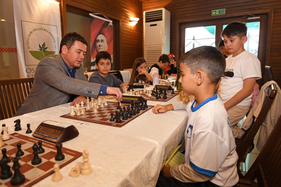 Osmangazi Belediyesi’nin Türkiye Satranç Federasyonu ile Gençlik ve Spor İl Müdürlüğü iş birliğinde düzenlediği 29 Ekim Cumhuriyet Bayramı Satranç Turnuvası, Cumhuriyet Bayramı’nın ruhunu sporun birleştirici gücüyle buluşturdu. Bu yıl 2025–2026 satranç sezonunun ilk turnuvası olma özelliğini taşıyan organizasyonda, 8 yaş altı ve 10 yaş altı olmak üzere iki farklı kategoride toplam 64 sporcu hamle yolculuklarına başlamak üzere yerlerine oturdu. Satranç tutkunları, Cumhuriyet Bayramı’nın ruhunu taşıyan karşılaşmalarda kıyasıya ter dökerken, Osmangazi Belediye Başkanı Erkan Aydın ve Türkiye Satranç Federasyonu Bursa İl Temsilcisi Taner Güler çekişmeli mücadelelerin heyecanına ortak oldu.