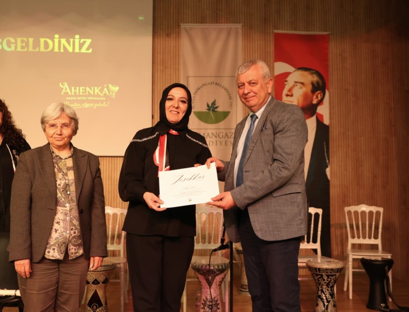 Gecenin sonunda Osmangazi Belediye Başkan Yardımcısı Mutlu Esendemir, Ahenka Kadın Ritim Topluluğu üyelerine günün anısına teşekkür plaketi takdim etti.