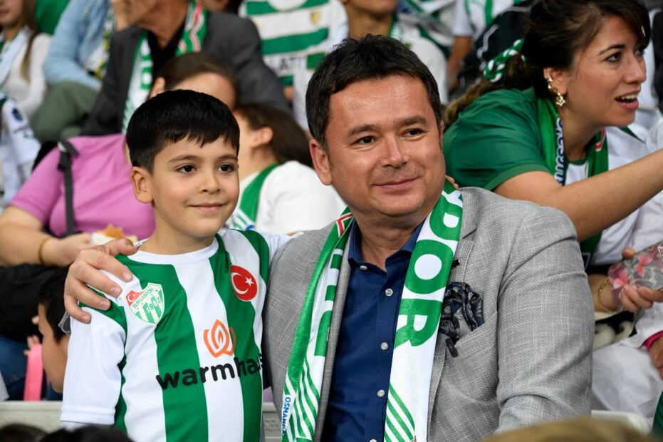 Osmangazi Belediye Başkanı Erkan Aydın, karşılaşmayı çocuklarla birlikte tribünden takip ederek heyecana ortak oldu. İlçenin farklı mahallelerinde yaşayan ve daha önce Bursaspor maçını hiç tribünden izlememiş çocukları muhtarlar aracılığıyla tespit ederek maçlara götürdüklerini söyleyen Başkan Aydın, “Bugün Altınova, Gülbahçe ve Küplüpınar mahallesinden 100 çocuğu Bursaspor maçını izlemek için stada getirdik. Bu projeyle çocuklarımıza yeşil-beyaz sevgisi kazandırmayı hedefledik. Burada çok güzel bir atmosfer var. Bursaspor’a başarılar diliyorum” diye konuştu.