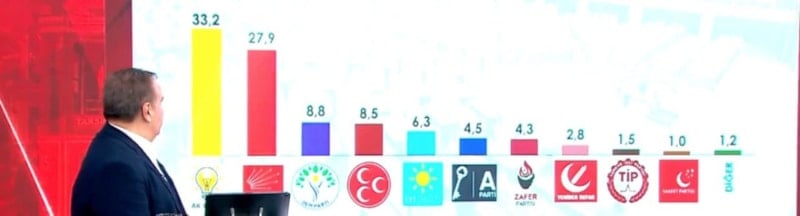 Ankete göre AK Parti yüzde 33,2 ile ilk sırada yer alırken CHP yüzde 27,2’de kaldı.