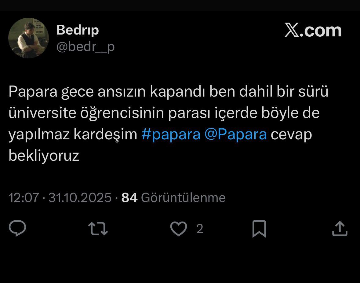 Papara kullanıcıları, sabah saatlerinden itibaren sosyal medya platformlarında ve şikâyet sitelerinde faturalarını ödeyemediklerini, günlük harcamalarını yapamadıklarını ifade eden paylaşımlar yaptı.