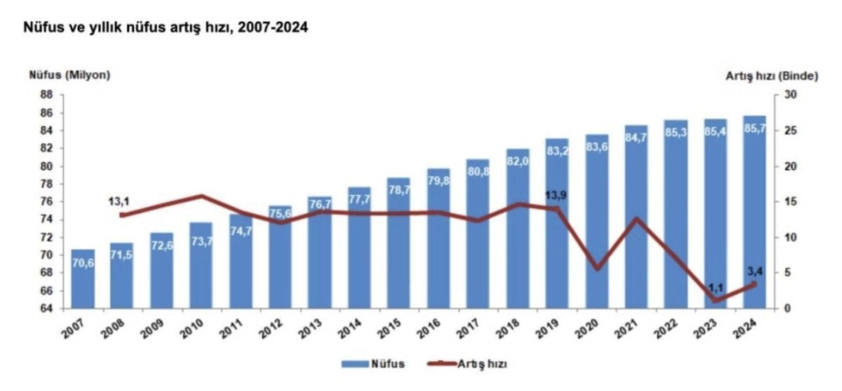 Artış hızının son yıllarda belirgin biçimde yavaşlaması, ülkenin demografik yapısında köklü ve kalıcı değişimlere yol açabileceği endişesini beraberinde getiriyor.