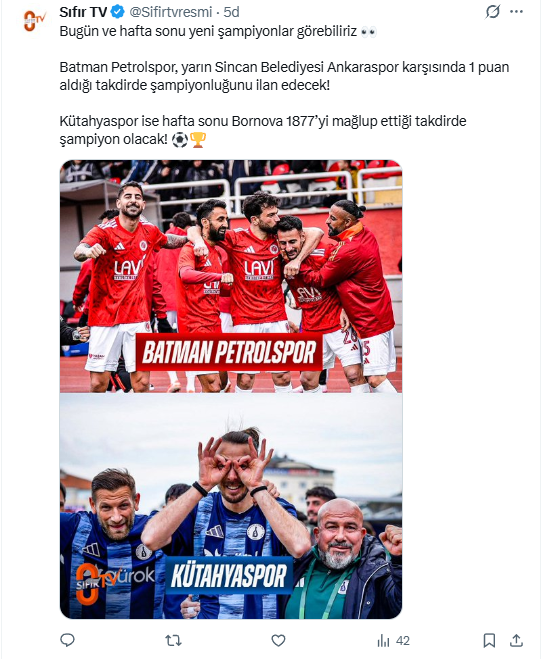 Tüm bu gelişmelere rağmen Sıfır TV, resmi sosyal medya hesaplarından yaptığı açıklamada Batman Petrolspor ile Sincan Belediyesi Ankaraspor arasında oynanacak kritik şampiyonluk mücadelesini canlı yayınlayacağını duyurdu. Bu karar, kanalın yayın hakları iptal edilmesine rağmen son bir hamleyle futbolseverlere ulaşma çabası olarak yorumlandı.