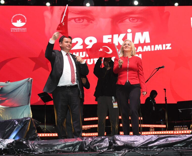 Konseri vatandaşlarla birlikte izleyen Osmangazi Belediye Başkanı Erkan Aydın, “Cumhuriyet Bayramı coşkusunu kalplerimizin en güzel yerinde, hep birlikte paylaşmak üzere hepiniz hoş geldiniz. Yağmura ve soğuğa rağmen, bu meydanı dolduran sizlerin varlığı, Cumhuriyet’e olan sevdamızın en güçlü göstergesidir. Biz şikayet etmiyoruz. Çünkü biliriz ki, yağmur berekettir, umuttur, gelecektir. Bu akşam da, Cumhuriyetimizin 102’nci yılını Zeynep Bastık konseriyle hep birlikte kutluyoruz. Burada Cumhuriyetine sahip çıkan, geleceğine umutla bakan, asla geri adım atmayan gençleri görüyorum. Gökyüzü ağlamadan gökkuşağı görülmez. Güzel günler çok yakın. Bugünleri hep birlikte geçecek, yarınların güneşli günlerine hep birlikte yürüyeceğiz. Cumhuriyet’in bize kazandırdığı faziletlerle, erdemle, onurla ve umutla yaşamayı sürdüreceğiz. Bize bu onurlu yaşam hakkını armağan eden Büyük Önder Gazi Mustafa Kemal Atatürk ve silah arkadaşlarını rahmet, minnet ve saygıyla anıyorum. O halde, yaşasın Cumhuriyet. Nice 102 yıllara” dedi.