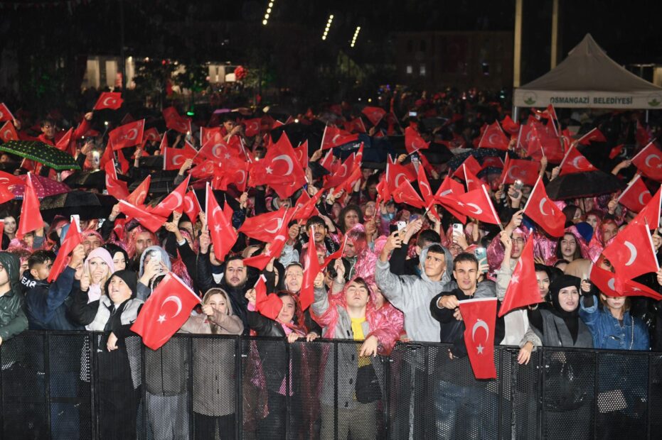 Osmangazi Belediyesi, 29 Ekim Cumhuriyet Bayramı kutlamaları kapsamında muhteşem bir konsere ev sahipliği yaptı. Osmangazi Meydanı’nda düzenlenen konserde sahne alan Zeynep Bastık, yağmura rağmen seslendirdiği şarkılarla Bursalıların içini ısıttı.